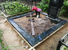 Мощение гранитной брусчаткой поверхности могилы,