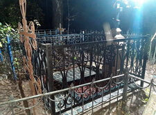 Тем временем мы изготовили табличку, закрывающую лицевую сторону надгробья, а также православный крест, венчающий памятник. Установка этих элементов завершила реставрацию памятника и мы взялись за укладку гранитной брусчатки, оставив в одном из углов участка место под квадратную клумбу. Брусчатку замыли водой и оставили высыхать, в цветник же насыпали мульчу. Окончание работ на данном месте захоронения происходило в тёмное время суток, так как для заказчика срочность благоустройства была одним из решающих критериев при выборе мастеров.